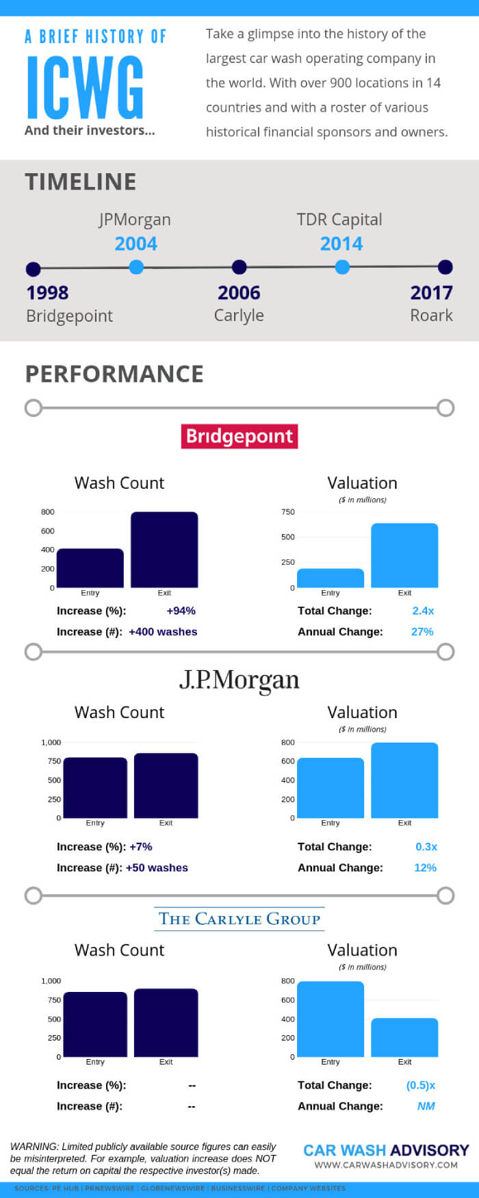ICWG is a particularly illustrative and interesting subject under the current lens of focus. Not only is it the largest single car wash operator in the world, but it has a deep and rich history of being owned by a full roster of different private equity investors throughout its existence. ICWG and the Company’s history exemplify many of the key tenants and trends of private equity’s involvement in the sector, which makes it an ideal showcase example.
