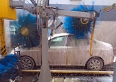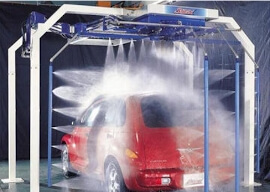 into a location and the equipment moves around the car and performs the wash. The customer remains